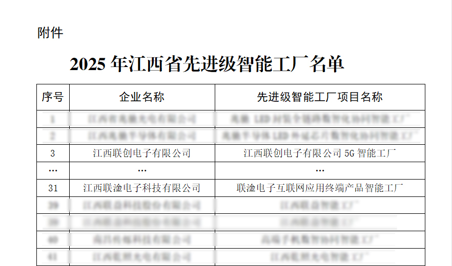 克日,江西省工业和信息化厅正式宣布2025年江西省“先升级智能工厂”名单,186家企业入选。其中江西永乐国际电子有限公司、江西联淦电子科技有限公司2家永乐国际电子系企业名列榜单。这标记着公司在智能制造领域的立异效果再次获得政府权威认可。